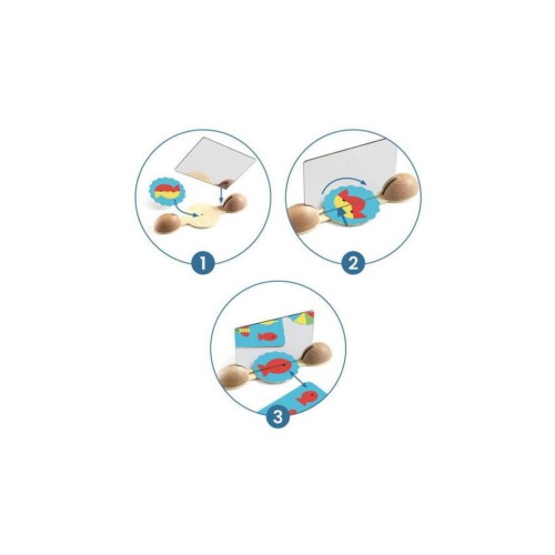 Відкрийте для себе настільну гру DJECO Дзеркальні картинки, першу освітню гру, в якій можна вчитися та отримувати задоволення, граючи з відображенням у дзеркалі.
