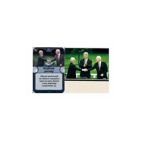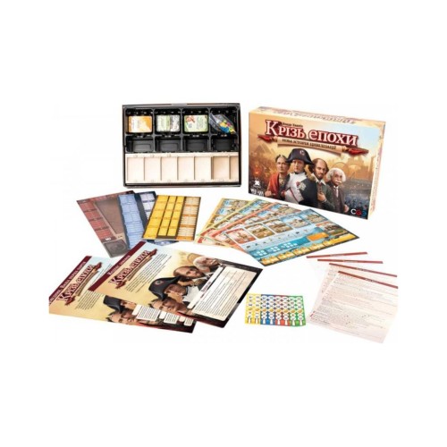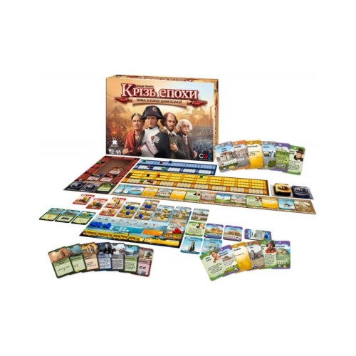 ряд карт, 1 поле культури, 1 поле науки, 1 поле військової сили, 1 поле поточної доби, 4 планшети гравців, 179 цивільних карток, 150 військових карток, 250 пластикових кубиків 4 кольори, 28 дерев'яних компонентів 4 кольорів, 1 лист з наклейками, 4 пам'ятки, 1 книга правил, 1 довідник