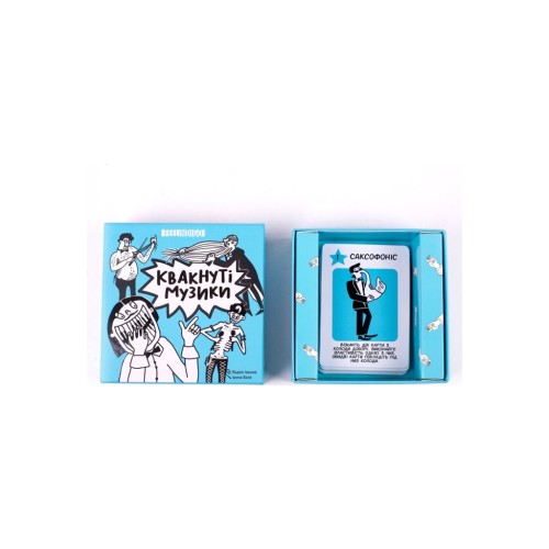Квакнуті Музики - це швидкий гумористичний картковий філер від українського видавництва Feelindigo.