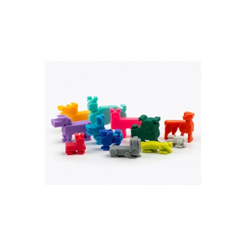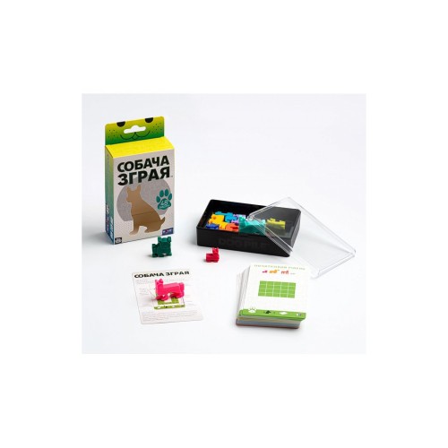 44 головоломки; 44 рішення; 12 фігурок собак; дорожній пластиковий кейс; правила гри