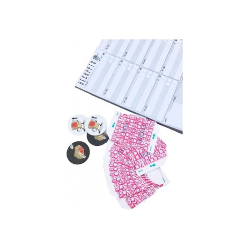 пісковий годинник, 2 ретрокомп'ютери, 110 карток зі словами (440 слів), 48 карток-кодів, 8 жетонів, аркуші для записів, правила гри