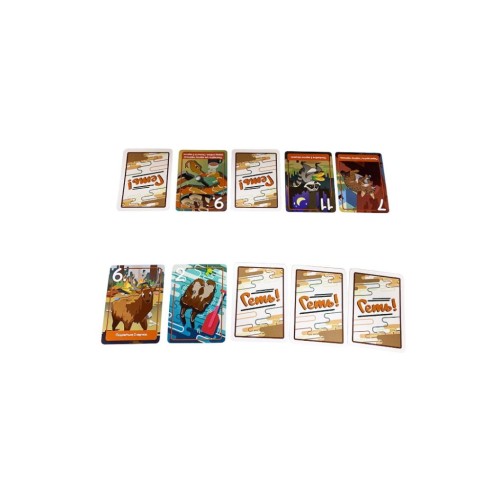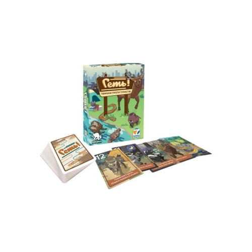 Геть! Тварини проти туристів (Scram!) це весела та швидка командна карткова гра, в якій гравці діляться на дві команди і намагаються спекатись тварин у своєму таборі.