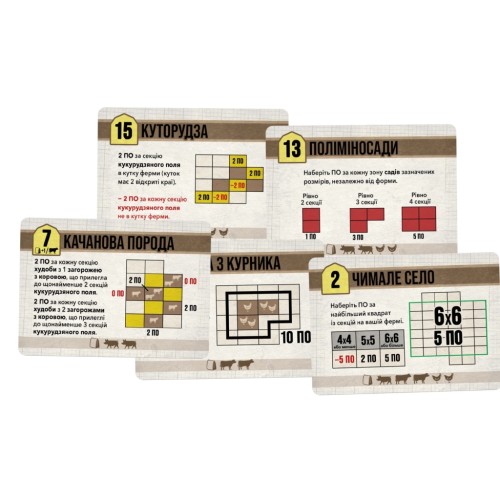 Не можна викладати нову карту так, щоб вона накривала карту повністю, підкладати нову карту під іншу карту ферми та викладати нову карту так, щоб вона прилягала до іншої карти в зоні будівництва тільки кутом.