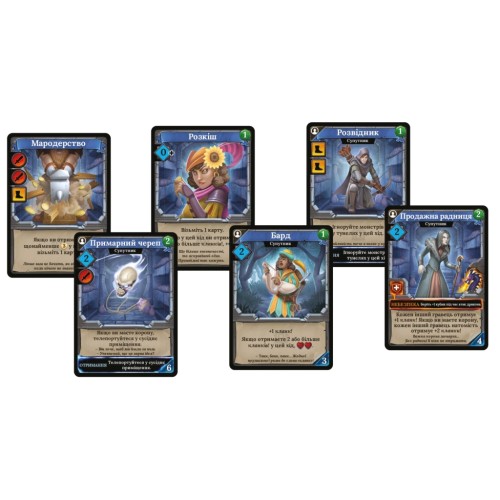 29 плиток підземелля, 1 планшет катакомб, 180+ карт, 140+ жетонів, поле ринку, 120 кубиків та 4 фігурки гравців, 24 кубики дракона, 5 кубиків привидів, мішечок дракона, маркер дракона, довідник з жетонів, книга правил