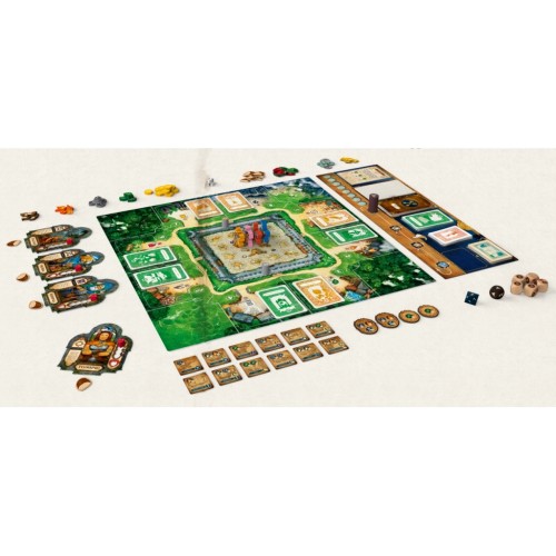 2 ігрові поля, 230 карт, 74 жетони та маркери, 30 дерев'яних фішок ресурсів, 16 плиток будівель, 8 планшетів, 8 дерев'яних фігурок вартових, 7 кубиків, правила гри