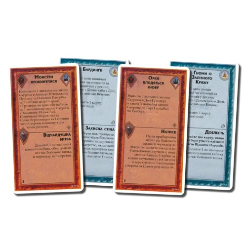 • Альтернативні картки. 4 нові карти подій Вільних Народів, 2 нові карти подій Тіні та 2 нові карти персонажа Гімлі;