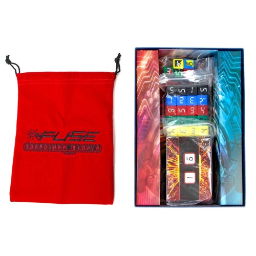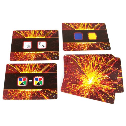 25 кубиків (20 одноколірних, 5 подвійних), 52 карти бомб, 10 карток детонаторів, 7 карток ролей 20 карток спалахів, 1 мішечок
