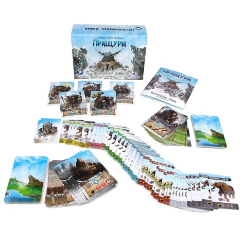 ОПИС ДОПОВНЕННЯ НЕСКІНЧЕННА ЗИМА: ПАЛЕОАМЕРИКАНЦІ – ПРАЩУРИ Чи вистачило вам літа, моря, сонця, городу чи що там у вас було цього сезону? Чи сповна ви насолодилися днями, коли можна було ходити містом у футболці, не покриваючись при цьому гусячою шкірою синюшного відтінку? Зараз ви, напевно, хитаєте головою і журитесь, що попереду сумна та довга зима, а, між іншим, дехто взагалі живе – і не здогадується, що може бути по-іншому. Наш персональний настільний портал у часі та просторі знову приводить до палеоамериканців, які заселяють свій негостинний, холодний континент у епоху вічної мерзлоти. І цього разу в їхньому стійбищі прибуло людей – час смажити найтовстішого доісторичного кабанчика!ЩО В КОМПЛЕКТІ 5 сміливих вождів привели за собою оновлену команду печерних воїнів зі своїми культурними традиціями: 75 нових членів громади готові до праці, оборони та видобутку харчування. 10 карток культур допоможуть стародавнім людям скоротити дозвілля, а 60 лютих представників доісторичної фауни – не залишитися голодними у ці непрості часи.ДЛЯ КОГО ДОПОВНЕННЯ Доповнення «Пращури» для сімейної настільної гри «Нескінченна зима: Палеоамериканці» зробить ваш північний побут ще цікавішим. Це не самостійна версія настілки, а лише ще один невеликий комплект карт для більшої різноманітності. Чи вистачить вам його?
