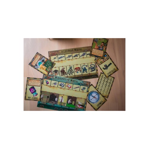 8 конвертів із ігровими завданнями, журнал подій, 5 карток ролей, 7 карток подій дня, 48 інших ігрових друкованих одиниць, маркер зі стирачем, правила гри