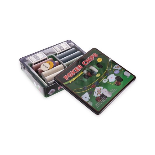 Цей набір покеру поставляється з усім необхідним для гри. Він включає комплект пластикових фішок, які мають різний номінал, позначений як цифрами, так і кольором. Комплект також включає дві стандартні колоди карт, а також фішки великого блайнда, малого блайнда і дилера. Крім цього в наборі є сукно покеру - своєрідна данина традиціям і відмінний спосіб захистити фішки і карти від подряпин, тим самим продовживши термін їх експлуатації. Для зберігання раціонального зберігання фішок передбачено пластиковий контейнер. Всі елементи комплекту укладені в коробку з тонкого листового металу – компактну та легку.