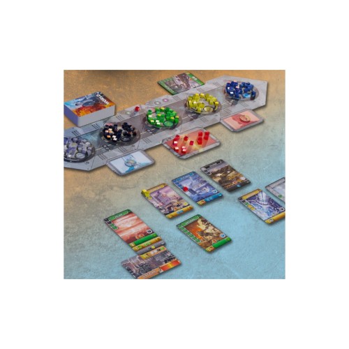 5 частин ігрового поля 5 двосторонніх карток Імперій 150 карток Розвитку 170 кубиків Ресурсів (Матеріали 35, Енергія 30, Знання 30, Гроші 30, Відкриття 30, Кристаліум 15) 80 жетонів Лідерів (40 Генералів та 40 Фінансистів) жетон лічильника раундів блокнот для підрахунку переможних очок правила гри