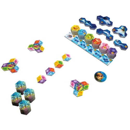 70 плиток коралів; 72 плитки малих тварин; 15 плиток великих тварин; 24 жетони екосистем; 1 жетон морського равлика; 4 плитки осередків; 1 блокнот для підрахунку окулярів; правила.