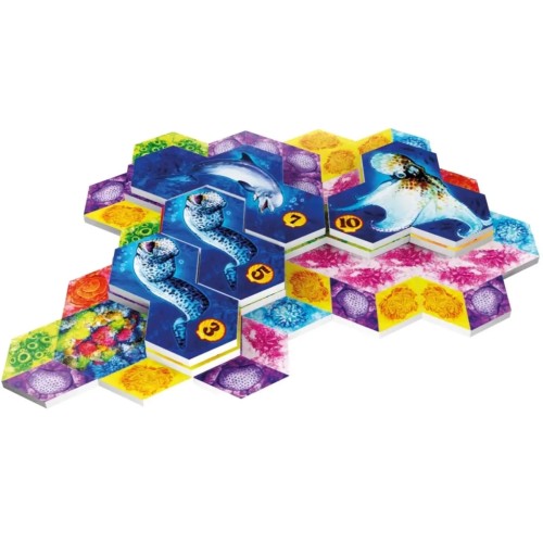 2. Створення ареалів і рифів. Шестикутник коралів одного кольору утворює ареал, який одразу заселяється твариною відповідного типу місцевості. Чотири або більше коралів одного кольору формують риф, який не можна заселити, але він приносить очки за прилеглих тварин.