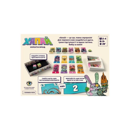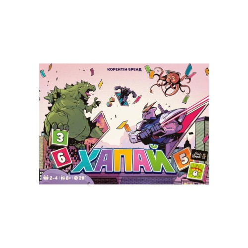 Тож якщо бої велетнів, руйнування, хаос, швидкі партії, тактичні планування та вдача від кидків кубів це саме те, за чим ви хотіли б провести вечір – обов’язково придбайте коробку з грою Хапай та хапайте кращих з кращих монстрів, аби довести, що ви кращий з кращих гравців!