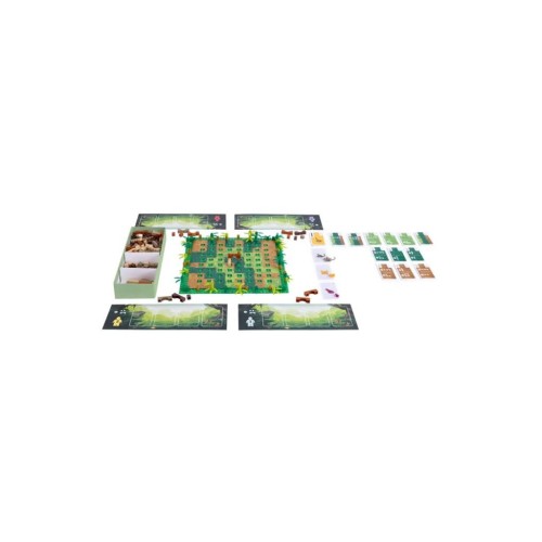 80 арок, 80 цеглинок, 16 колон, 32 бамбукові гілки, 16 золотих деталей, 1 мавпа, 1 метелик, 1 жабка, 4 кутові цеглинки, 1 пластина-основа, 67 карт мавп, 14 бонусних карт, 3 трофейні карти, 4 планшети гравців, 1 лоток для деталей, 2 листи з 4 мапами місцевості (1–4), правила