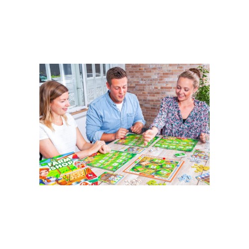 Вирощування їжі у вашому власному саду, зберігаючи худобу самостійно-самодостатність-це в моді, але управління реальною фермою з успішною сільськогосподарською магазином-набагато складніше завдання, ніж ця. У сімейній грі гравці можуть пережити цей досвід, не залишаючи будинку. Три кубики кинуті на кожен хід. З однією лімією активний гравець вибирає нове розширення для своєї ферми, і комбінація двох інших кісток визначає, яке поле буде активоване на фермі – не тільки для активного гравця, але й для всіх інших. Розширення посилює дії, які гравці використовують для молока корів, зсувних овець, збирання врожаю або збирають яйця, а потім можна продавати ці сировини. Зрештою, той, хто робить найбільше виграє гроші.