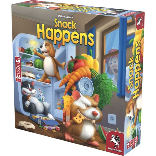 У світі настільних ігор настав епоха сміливих подвигів і захопливих випробувань! Ласкаво просимо у світ Snack Happens (англ.) — ігри, де хатні тварини перетворяться на спритних кулінарів і шукачів скарбів. Коли всі люди залишили будинок, настав час для захопливого набігу на холодильник. Кішки, миші, собаки та папуги приготувалися до великих звершень: хто ж із них першим наповнить свій схованик солодкими ласощами?