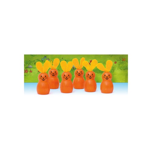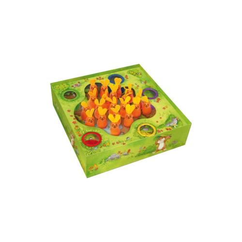 ігрове поле – коробка; 20 дерев'яних фігурок кролів з фетровими вухами; кольоровий кубик; правила гри