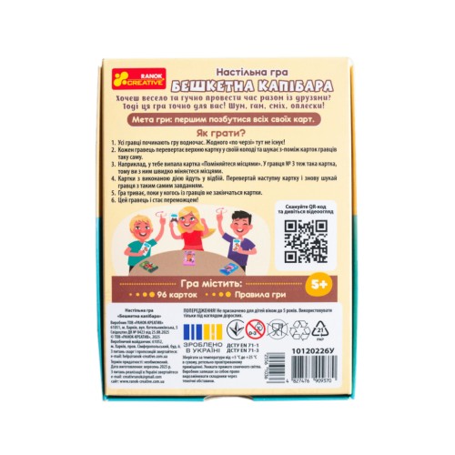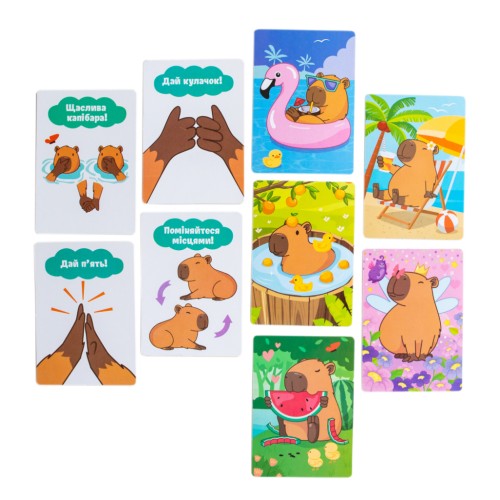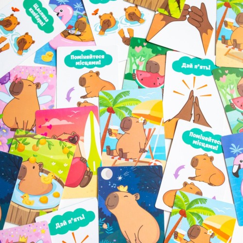 Завдяки компактній комплектації та зрозумілим правилам українською мовою, «Бешкетна капібара» стане вірним супутником у колекції карткових ігор, гарантуючи близько 30 хвилин сміху та захопливих пригод у дружній компанії. Не пропустіть шанс відчути магію цієї гри!
