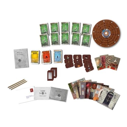 88 карток: 21 карта загадок, 33 карти відповідей, 30 карт підказок, 4 персональні повідомлення.