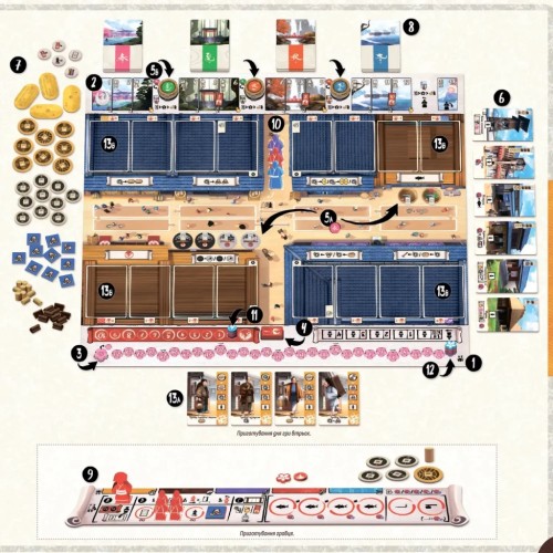 Старий Токіо розкривається перед вами у всій своїй величі та розмаїтості. Ви маєте можливість завітати до майстерень різних ремісників, які втілюють найкращі традиції Токійських мистецтв. Ваше завдання - залучати цих майстрів до свого плану створення ідеального життя, яке вимірюється на треку Ікі - символічному шляху до щастя.
