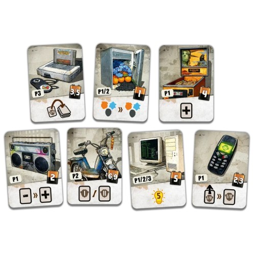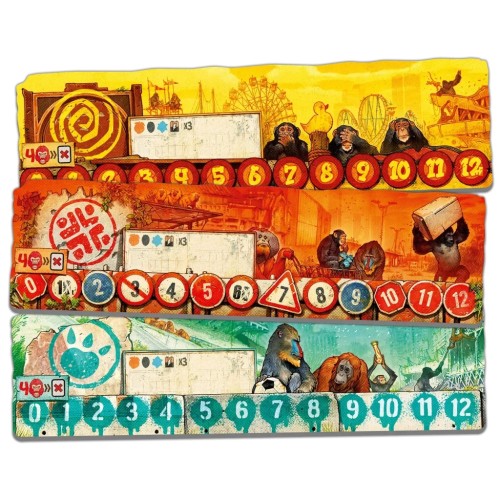 У грі є чотири типи ресурсів: злаки, квіти, фрукти та енергія. Енергію, крім ефектів на картах, можна витратити використання одного з жетонів предметів, яких у кожній партії буде три. А витративши 4 очки люті можна позбутися слабкої карти мавпи з відкритих карток і отримати за це бонус люті, вказаний на карті.