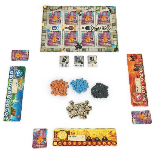 1 ігрове поле, 6 планшетів гравців (по 1 кожного кольору), 12 жетонів гравців (по 2 кожного з 6 кольорів), 24 диски дій (по 4 кожного з 6 кольорів), 48 стартових карток (6 груп по 8 тамарин), 120 карт племен (Шимпанзе, Горили, Мандрили 1-1 дерев'яних жетонів їжі (40 кольорів, 40 фруктів та 40 зерен), 47 картонних жетонів енергії, 7 тайлів предметів, 6 пам'яток гравця (по 1 на кожного)