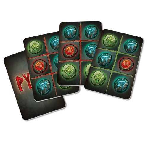 «Руни» — це кишенкова картярська настільна гра, де ви опинилися в невеличкому змаганні за звання Повелителя рун. У поточній грі викладайте карти з рунами на ігровому полі за певними правилами та надсилайте туди своїх рунових майстрів, щоб контролювати ці самі руни.