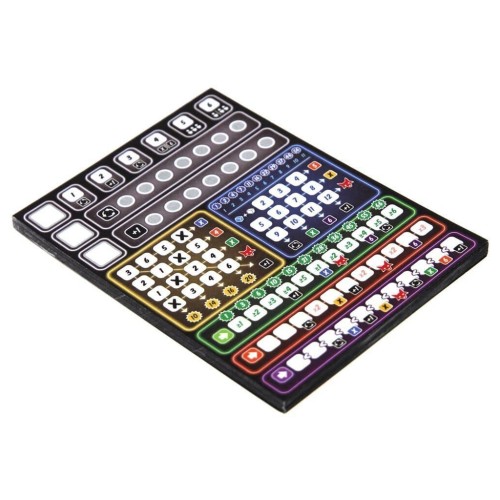 6 кубиків D6, блокнот ігрових полів, 4 фломастера правила гри