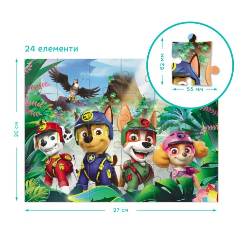 Пазл "Paw Patrol: Пригоди у Джунглях" стане чудовим подарунком для маленьких фанатів сміливих щенят і їх захопливих історій. Це ідеальний вибір для веселого проведення часу, який подарує безліч годин задоволення та навчання!