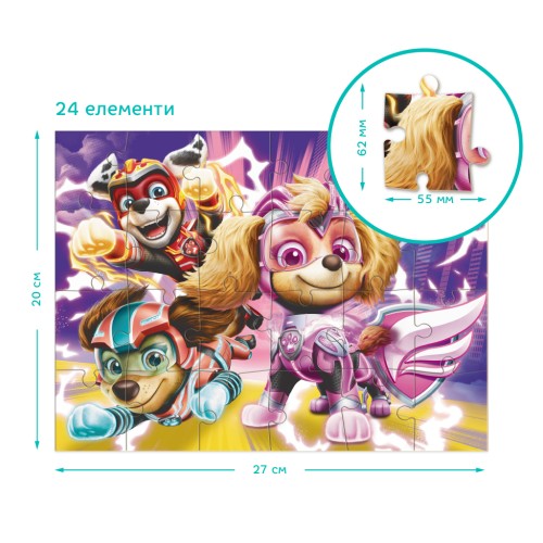 Пазл Dodo "Paw Patrol: Зберігаємо світ у безпеці" — це захопливий набір, який складається з двох пазлів: один на 24 елементи, а інший на 36 елементів. На яскравих ілюстраціях зображені улюблені герої — щенята з команди Paw Patrol, які готові до нових пригод та місій по рятуванню. Вони завжди готові прийти на допомогу і захистити світ від небезпек!