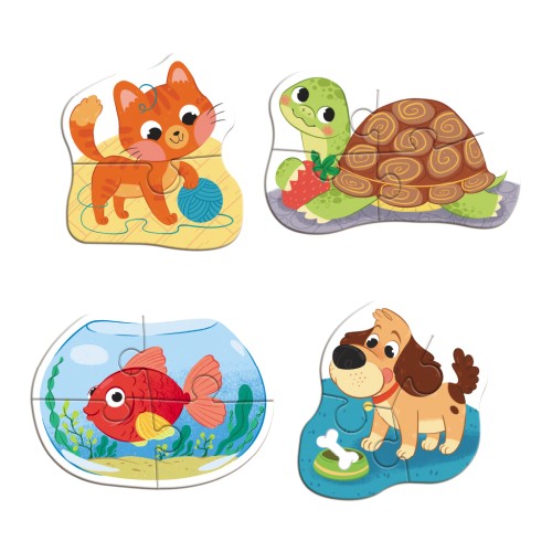 Познайомте свого малюка з милими домашніми улюбленцями разом із набором Baby Puzzle “Pets”. У комплекті 4 окремі пазли з різною кількістю деталей (від 2 до 4 елементів) — грайливе кошеня, веселий песик, кумедна черепаха та яскрава золота рибка.