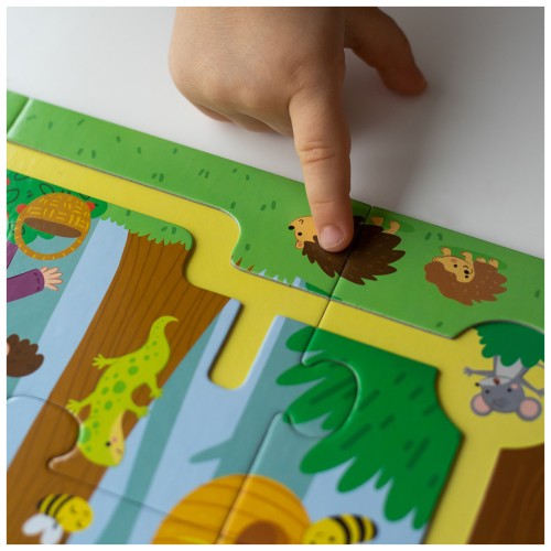 Пазл-лабіринт Dodo "Моя мандрівка лісом" — це унікальний розвиваючий пазл, що складається з 10 елементів, які створюють інтерактивний лабіринт. Особливістю цього пазлу є спеціальні заглиблення, по яких можна водити пальчиком, проходячи захоплюючий маршрут через ліс.