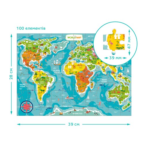 Розвиваючий пазл World Map на 100 елементів — пізнавай світ з задоволенням!