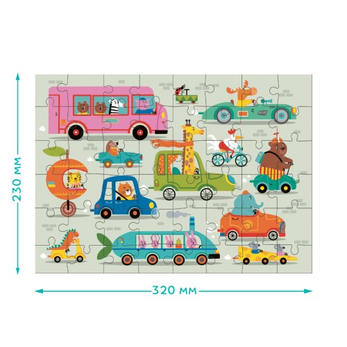 Пазл Dodo "Наздоганяй! На дорозі" складається з 48 елементів і захоплює яскравими ілюстраціями, що перенесуть вашу дитину у світ веселого дорожнього руху. На картинці зображені різноманітні транспортні засоби, якими керують милі тварини: автобус, гоночна машина, велосипед, скутер і навіть одноколісне апельсино-авто.