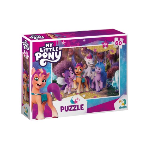 Пазл DoDo My Little Pony є яскравою і привабливою ілюстрацією, що складається з 60 елементів. Дитині необхідно знайти потрібне місце кожної деталі пазла та правильно з'єднати їх між собою, щоб зібрати зображення як на коробці.
