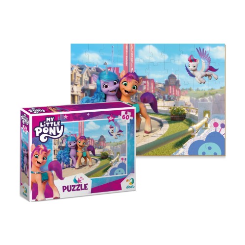 Пазл DoDo My Little Pony є яскравою і привабливою ілюстрацією, що складається з 60 елементів. Дитині необхідно знайти потрібне місце кожної деталі пазла та правильно з'єднати їх між собою, щоб зібрати зображення як на коробці.