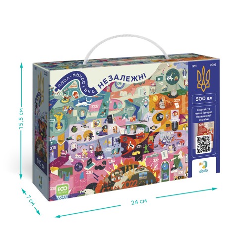 Пазл Dodo "Незалежні" — це унікальний пазл на 500 елементів, розроблений у співпраці з творцями Книги-мандрівки "Незалежні". Цей пазл є унікальним доповненням до книги, яке дозволяє глибше зрозуміти історію сучасної України.