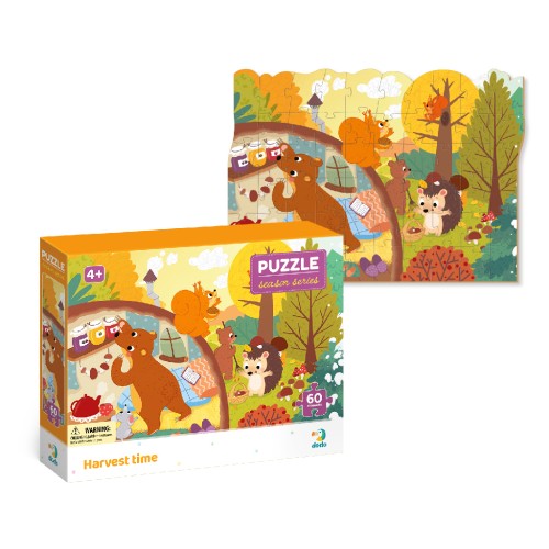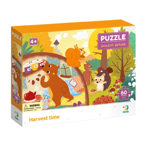 Настає осінь. Дерева вкриваються золотом, збирають останній врожай, а медведик починає готуватися до сплячки. Він запасається варенням, прибирає у своєму барлогу та заварює запашний чай. Робимо навколишній світ чарівнішим за допомогою серії «Пори року», які стануть фаворитами маленьких фантазерів. Яскраві пазли для дітей від 4-х років, розповідають історії пригод милих тваринок. Зберіть всі чотири пазли серії, щоб скласти їх у єдину картинку! Виготовлені з якісного картону, вони довговічні, приємні на дотик та зручні у використанні.