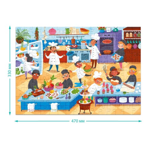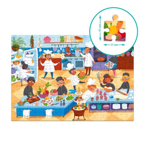 Цей пазл — чудовий спосіб розвинути дрібну моторику, логічне мислення та уважність вашої дитини. В процесі складання пазлу дитина дізнається більше про професію кухаря та побачить, як створюються кулінарні шедеври.