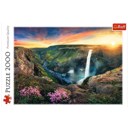 Пазли на 2000 елементів із зображенням чудового вигляду на найвищий водоспад Ісландії - Хайфосс.