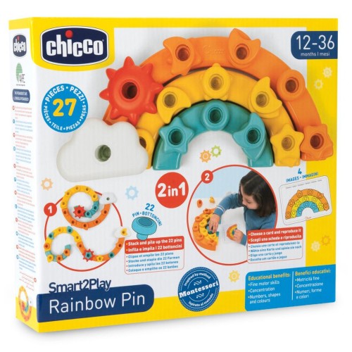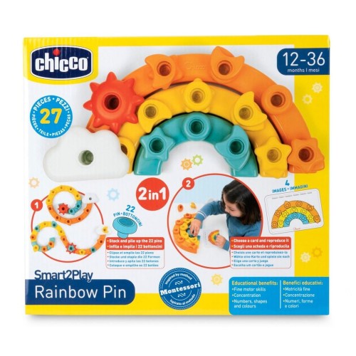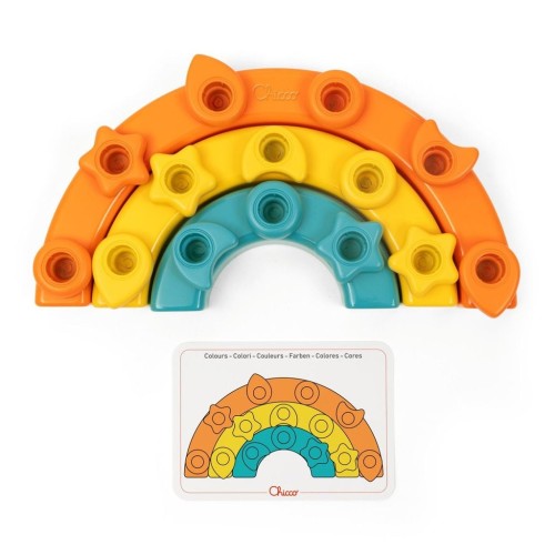 Розвиваюча іграшка Chicco "Веселка" 2 в 1 – чудовий набір для креативної гри, який знайомить малюка з кольорами, формами та явищами природи.