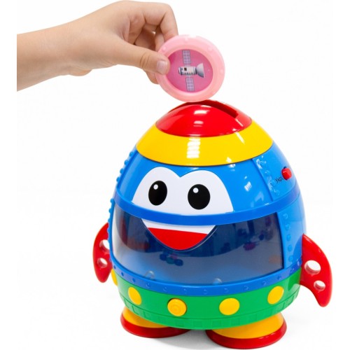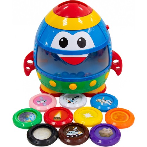 • Всі диски з космічними об’єктами зручно зберігати всередині іграшки, а також легко витягати: достатньо відкрити кришку відсіку на задній стороні іграшки.