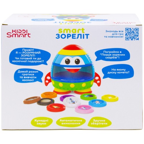SMART-ЗОРЕЛІТ - це інтерактивна двомовна іграшка, завдяки якій дитина вивчить космос українською та англійською мовами. А яскраві диски з космічними об'єктами зроблять гру ще цікавішою та веселішою! Нумо разом навчатися та гратися!
