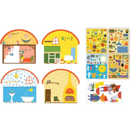 У комплекті: стіни будиночка, картонні фігурки та 130 багаторазових наліпок.