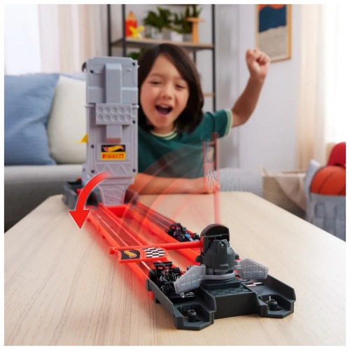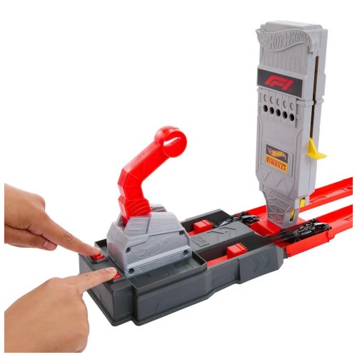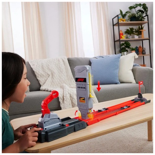 Завантажте дві машинки Formula 1® у масштабі 1:64 до пускових установок, підніміть важіль на стартовій вежі, зосередьтесь на зворотному відліку – і натисніть кнопки запуску, щоб розпочати перегони.