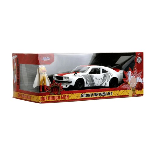 Компанія Jada представляє вам ліцензійну модель автомобіля, яка ідеально підходить одному з головних героїв аніме Ванпанчмен Сайтама. А саме, було підібрано неймовірно круту модель Mazda RX-3 1974 року, у білому кольорі та відповідному дизайні.