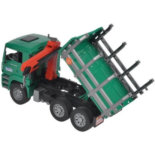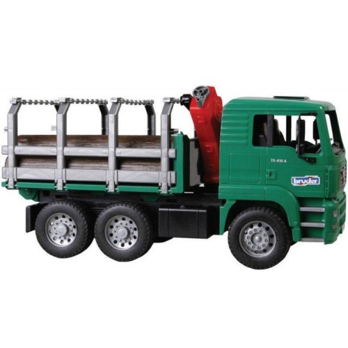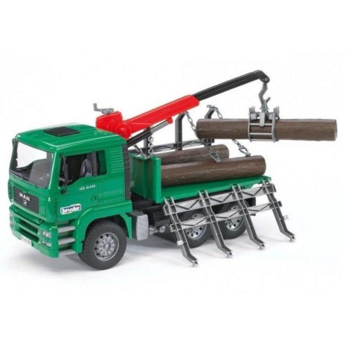 Вантажівка Bruder MAN, виконаний з міцного безпечного матеріалу зеленого і сірого кольорів, відмінно підійде дитині для різних ігор. Машина є зменшеною копією лісовоза фірми MAN. Вантажівка обладнаний портативним краном з гаком і спеціальним затискачем колод.