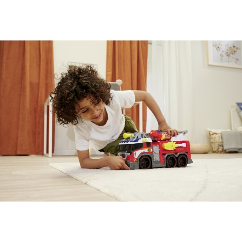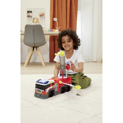 Пожежна машина оснащена бічним механічним захопленням, яке можна переміщати в усіх напрямках для збирання невеликих предметів, таких як іграшкові транспортні засоби. Маленьким пожежникам сподобаються звукові та світлові ефекти, які супроводжуватимуть їхню подорож на виклик. Керувати автомобілем легко завдяки колесам із функцією вільного ходу.