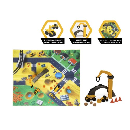 Набір міні-спецтехніки з ігровим полем Funrise стане чудовим доповненням до іграшкового транспорту Вашого малюка. В комплекті: 2 одиниці міні-спецтехніки, міст, кран, дорожні знаки (конуси) та іграшкове каміння.